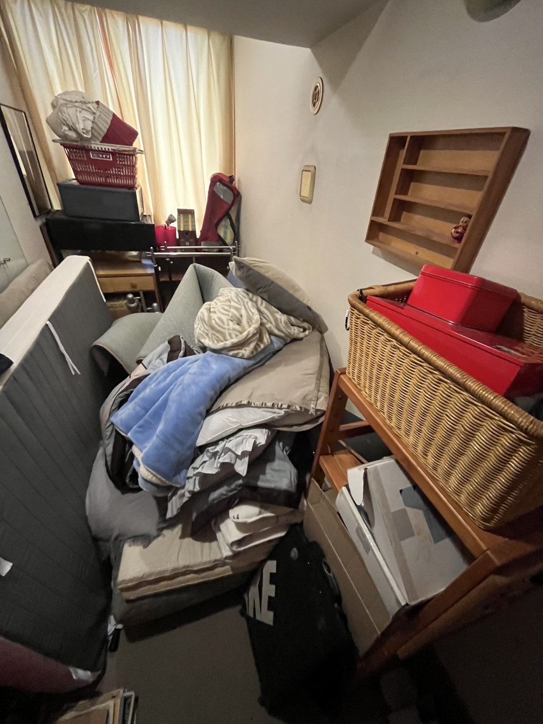 中京区のワンルームマンションにて生活用品一式の回収作業を実施しました。ベッド一式、衣類収納棚、生活雑貨など幅広い品目を回収。衣類は状態の良いものは古着として、段ボールは資源回収へ、その他の品目も可能な限り分別してリサイクル処理を行い、廃棄物の削減に努めております。