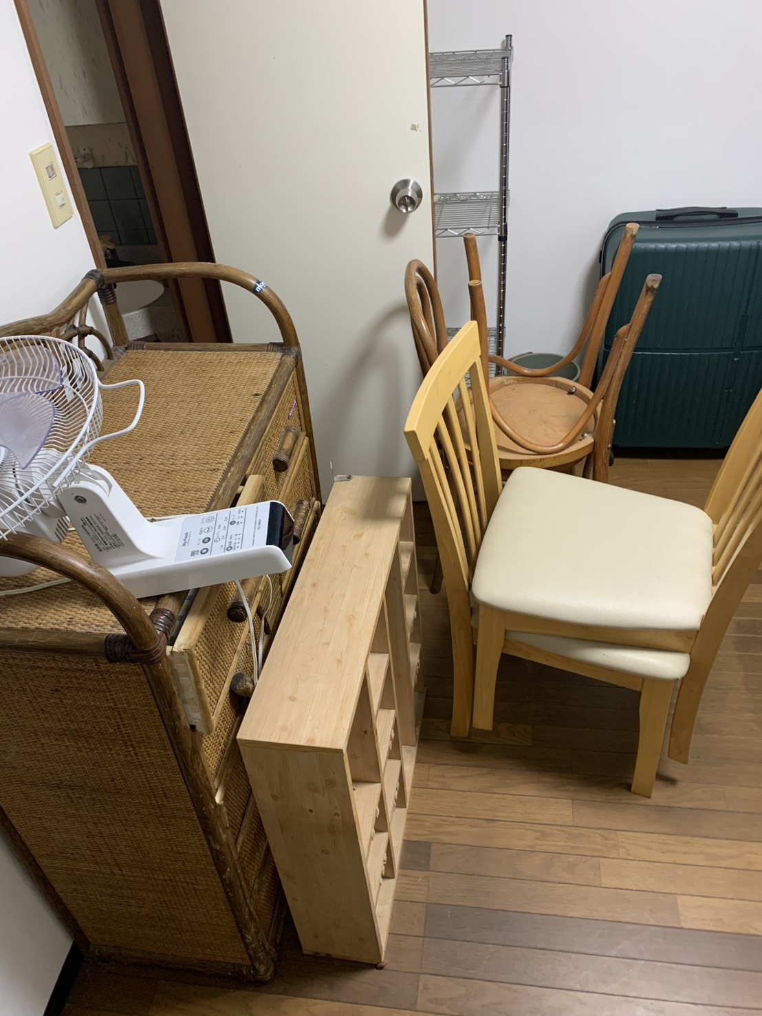 実家の片付けで、複数の家具や日用品の処分をご希望されていました。お客様ご自身は遠方にお住まいで、一度にまとめて対応させていただきました。収納ダンスは3段式で重量があり、中身を確認してから搬出。扇風機やスーツケースなどの小物類も、残すものと処分するものを確認しながら慎重に作業を進めました。ラックや収納棚は分解せずそのまま運べるサイズだったため、時間短縮につながりました。作業終了後、「こんなに親身になってもらえるとは思わなかった。お願いして本当によかった」とお電話でもお礼をいただきました。