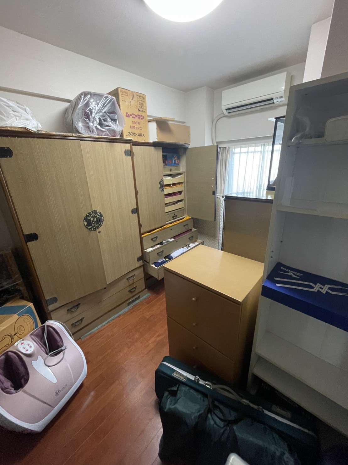 左京区の二階建て住宅にて大型家具・家電の回収作業を行いました。重量のあるタンスや収納棚は階段作業となりましたが、専用器具を使用して安全に搬出。マッサージ機は電気製品として適切に処理し、段ボールは資源回収へ回します。お客様の断捨離のお手伝いができました。
