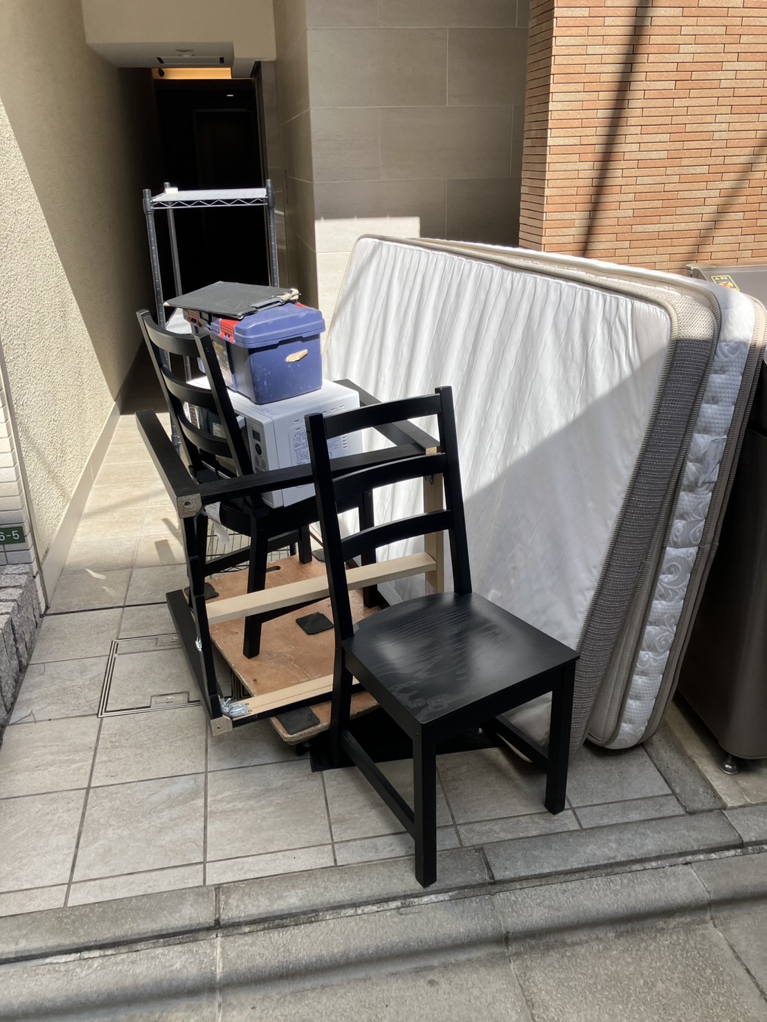 ワンルームマンションからの引越しに伴う、まとまった量の不用品回収でした。「引越し業者さんには運んでもらえないものばかりで困っていた」とのご相談でした。ダイニングテーブルは一部を取り外すことで対応できました。電子レンジやラックなどの小物も、お客様が分別に迷われていたため、当日その場でアドバイスをしながら効率的に回収。「1回で全部片付いて本当に楽だった!」と満足いただけました。