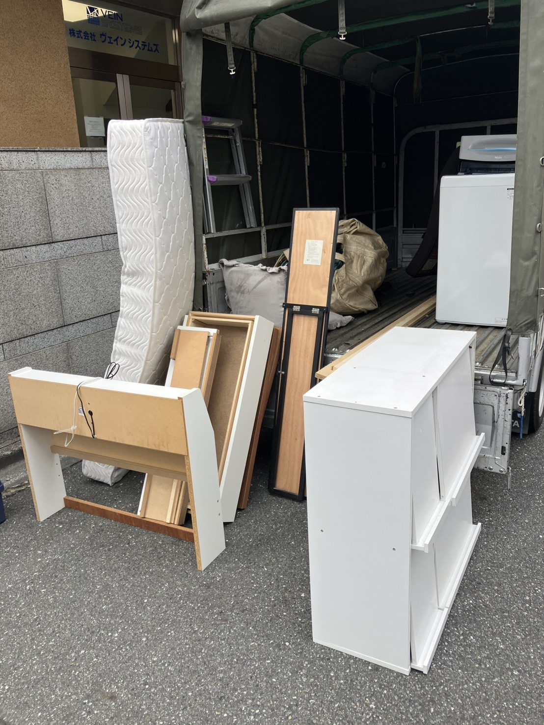 山科区のマンションにてベッドフレームの回収作業を行いました。お客様の引っ越しに伴い、シングルサイズの木製ベッドフレームを解体・回収いたしました。狭い階段での搬出作業でしたが、丁寧に解体して安全に運び出すことができました。回収した木材は適切にリサイクル処理し、資源の有効活用に貢献しております。